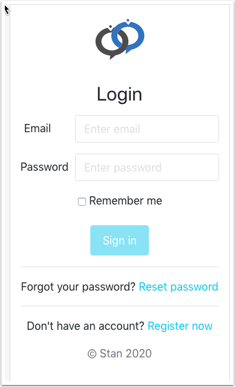Login to Stan with your email address and password (pre-registration required).