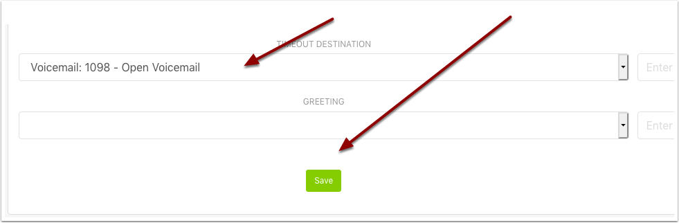 In this example I am just going to set our timeout destination to our open voicemail. Then click save.